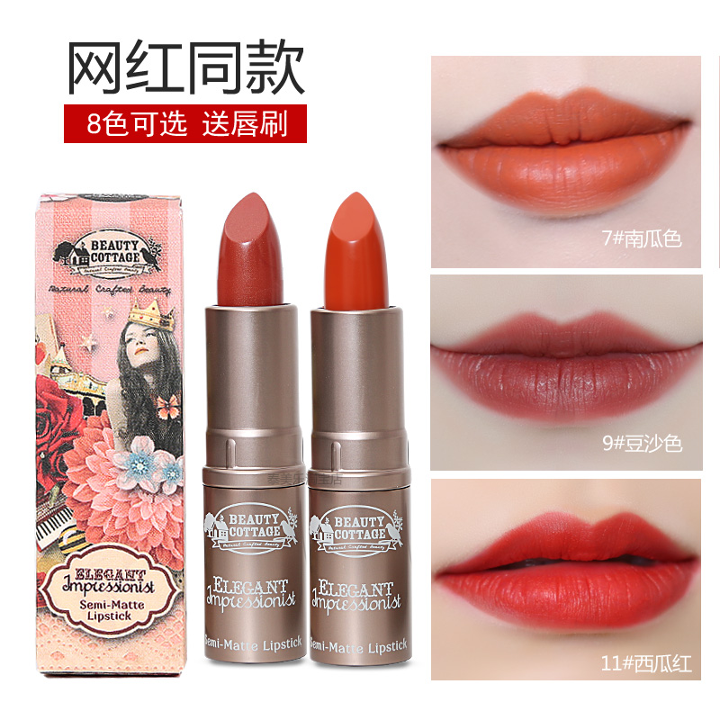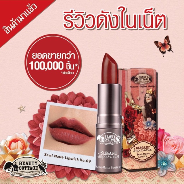 ราคาส่ง 12 ชิ้น 275 บาท Beauty Cottage Elegant Impressionist Semi-Matte Lipstick เป็นลิปเนื้อกึ่งแมท lipstick กล่องสไตล์วินเทจหรูหรา ผลิตภัณฑ์ออกแบบมาแนวเจ้าหญิง โทนสีสันสวยหรู เนื้อละเอียด แต่ละสี น้ำหนักเบา พกพาง่าย ดูหรูหรา